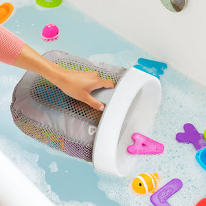 SCOOP, STRAIN, STORE! Has your little one turned your bath tub into a toy box?You’ll love how simple it is to keep your bathroom clutter-free with the Super Scoop Bath Toy...