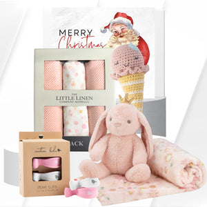 Keep your little girl active this Christmas season with this gorgeous half of a featuring vibrant and colourful toys and baby essentials. Your little baby girl can enjoy a blanket with a plush toy, a crochet ice cream, soft muslin against their skin with ballerina bunnies and more. This makes it the perfect bundle for newborns!