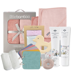Put your worries away and let our little baby girl enjoy a bubble bath with this splendid hamper. This beautiful baby girls’ bath time bundle is an ideal collection for parents transforming bath time into a breeze. From face washers to hooded towels, rattles, lotions and body creams, we've got a range of baby items essential for bathtime.