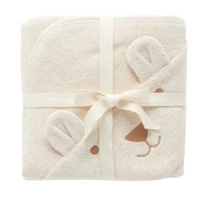 Pure Baby's soft Hooded Towel is perfect for bath time from newborn through to toddler age! Featuring an inbuilt hood with sweet animal embroidery and 3D ear details. Made from certified 100% Organic Cotton in an absorbent and soft double terry towelling.