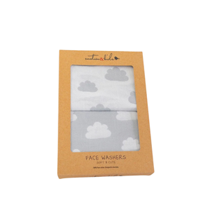 Emotion & Kids Grey Cloud Muslin Face Washers 2pk