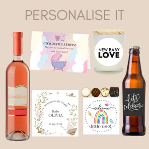 This baby hamper is already perfect. But it’s so much better when you add your own touch to it. Add an extra bottle of wine, or a few celebratory treats to share in the parents’ joy. Maybe add a delightful scented soy candle to add fragrance to those precious quiet moments in their home with a newborn.