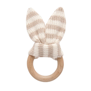 This PureBaby Rabbit Ear Teether is great for tiny hands to grab onto and help calm sore gums. It's got cute cotton-knitted bunny ears tied to a 100% beech wood ring.