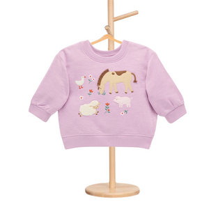 Our cosy Embroidered Windcheater features a sweet applique of farm animals on the chest ! Made from soft, easy care 100% Organic Cotton brushed fleece, this is a warm and roomy style that can be worn throughout the transeasonal months.