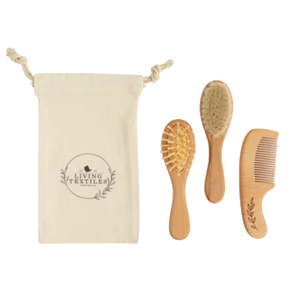 Living Textiles 3 Pc Baby Wooden Brush & Comb Set - Baby Gifts Australia