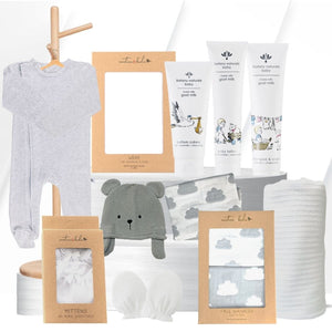 Treat a little one to a special birthday surprise with this beautiful baby hamper! Packed with the cutest goodies, it includes the comfy Emotion & Kids Grey Teddy Hat, White Stripe Baby Wrap, Bodysuit, and Mittens. The soft Grey Cloud Muslin Face Washers are perfect for delicate skin, while the Botany Naturals Baby Lotion, Bottom Cream, and Shampoo & Body Wash will keep bub feeling fresh and pampered. It’s the ideal gift to celebrate baby’s big day and make it extra sweet!