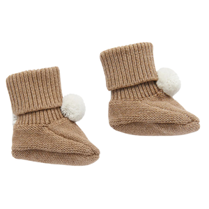 Pure Baby Cinnamon Pom Pom Booties - Baby Gifts Australia