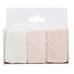 Keep their little toes warm with Pure Baby's Essentials 3-Pack Socks. Featuring soft ribbed openings, made from an organic cotton blend for a soft and breathable style.