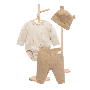Pure Baby's 3-piece gift set is beautifully designed for great gift ideas. This comes with a long sleeve printed bodysuit, legging-style pants and a matching hat with cute ears on top.